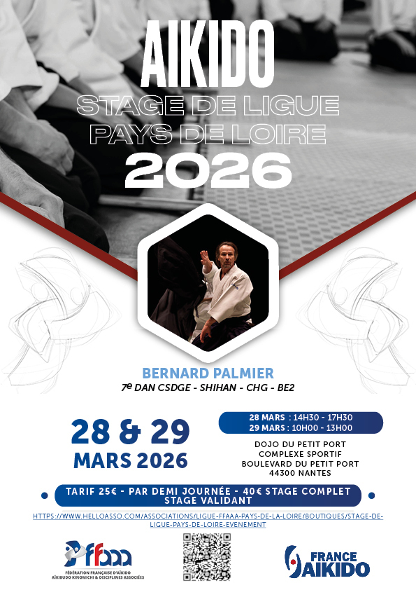 Nantes, Samedi apres midi et dimanche matin; horaires selon affiche dojo du petit port à Nantes https://www.helloasso.com/associations/ligue-ffaaa-pays-de-la-loire/boutiques/stage-de-ligue-pays-de-loire-evenement 25€ 1/2 journée et 40€ le stage complet